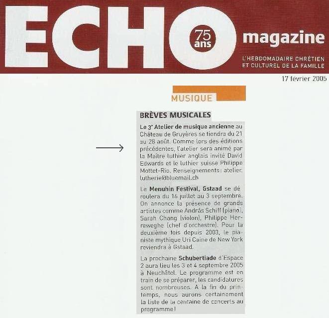 Romande, Espace 2, L'Heure Musicale, 28 août 2005 (17.00-19.00)